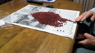さて、帰宅すると、父があんこ作りのための小豆をチェック